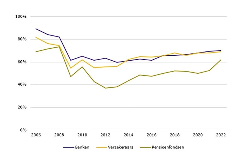Het vertrouwen in banken en verzekeraars bleef het afgelopen jaar stabiel. Dit cijfer is hoger dan dat voor de pensioenfondsen, maar het verschil neemt dus af. Eerder onderzoek van DNB maakte duidelijk dat dit lagere vertrouwen in pensioenfondsen vooral terug te voeren is op het uitblijven van indexering.